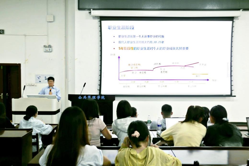 何静波校友围绕职业生涯规划核心命题,从职业阶段划分、各阶段学习重点、简历设计技巧等维度展开系统讲解。他清晰划分职业发展不同阶段的核心任务,明确各阶段学习重点与方向,引导学子结合自身成长节奏,科学规划职业发展路径。结合自身招聘工作经验,他从版式设计、内容布局等方面拆解优质简历制作要点,致力于让简历逻辑清晰、亮点突出,便于招聘方快速抓取核心信息。同时,他梳理简历制作“避坑指南”,针对易被忽视的细节问题逐一提醒,助力学子规避求职细节误区。