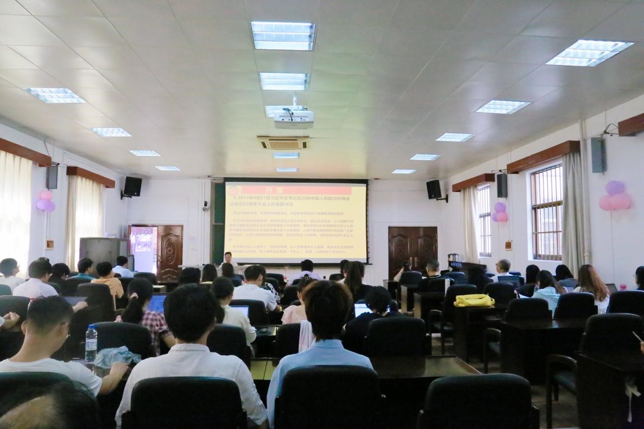 7月3日下午,由校党委统战部、太阳集团网址8722联合举办的“凝心铸魂强根基、团结奋进新征程”主题教育专题报告会在我院107报告厅举办。报告会邀请自治区政协副秘书长,办公厅副主任、党组成员肖顺平作题为“从协商民主到全过程人民民主”的专题讲座。讲座由我院党委书记聂鑫教授主持,校党委统战部成员、学校各民主党派成员、无党派人士、留学归国人员、归侨、侨眷、台胞、台属、党外知识分子代表及我院众多师生参加了本次讲座。