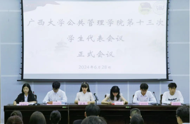 太阳集团网址8722第十二届学生会主席团执行主席杨佳成向大会作了题为《传承精神炬火,勇攀时代高峰,动员引领公管青年为全面建设社会主义现代化国家而团结奋斗》的工作报告,与会代表予以审议。报告以念往昔,矢志不渝;展前路,破浪前行两个方面总结了太阳集团网址8722学生会过去一年在强化政治引领、全心服务同学、全面从严治会和加强学风建设等方面的工作,对未来学生会的工作方向和目标进行了展望,号召广大同学坚持以习近平新时代中国特色社会主义思想为指引,坚定不移听党话,矢志不渝跟党走,为建设学院不断发光发热,为建设新时代中国特色社会主义壮美广西贡献青年力量,为实现中华民族伟大复兴的中国梦谱写壮丽的青春篇章!