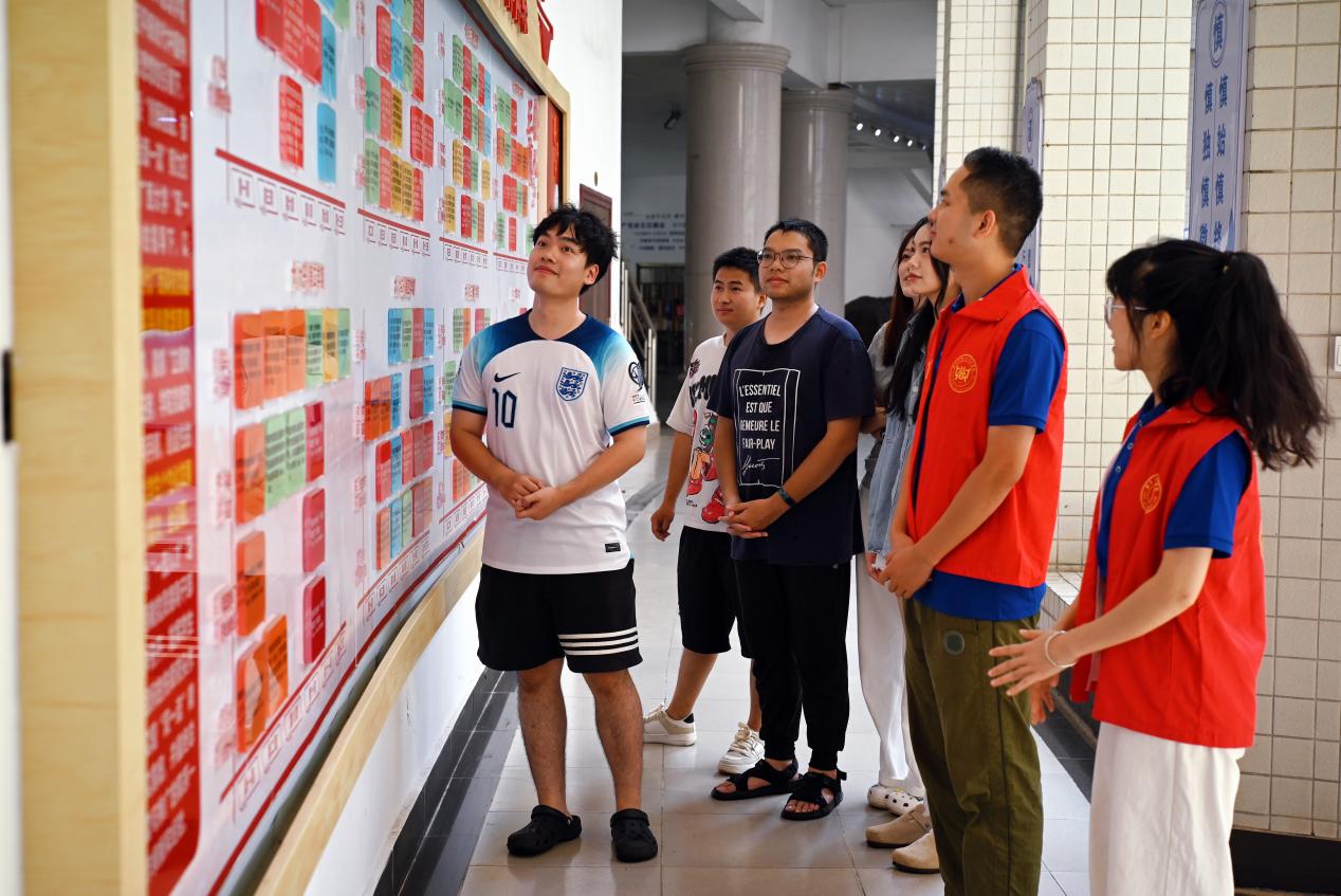 育才广场、综合楼、汇学堂……志愿者们引领新生逐一探访校园内的标志性场所,助力新生快速熟悉校园环境,让每一个角落都留下他们的足迹。
