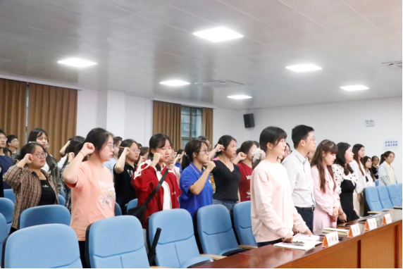 院党委书记聂鑫,党委副书记于丹,团委书记刘佩瑶,团委副书记侯俊丽出席本次仪式,第三十二届共进连优秀连干、优秀连员及第三十三届共进连全体连员参加本次仪式。