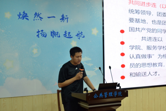 第三十二届共进连连长王华杨对上一年工作情况进行总结汇报,她表示,太阳集团网址8722共同进步连第三十二届全体成员在我院党委的统筹领导,团委的具体指导下,严格贯彻落实各项工作。举办了“化作青春之火、点燃共同理想”两院联合趣味课堂知识竞赛活动,加强理论学习,传承红色基因。开展了广西壮族自治区博物馆参观暨南湖公园“三走三勤”活动,锻炼身体素质,培养集体荣誉感。同时扎实做好志愿服务工作,发扬公管学子先锋表率力量,成功发挥共进连为党组织培养和输送人才的作用。