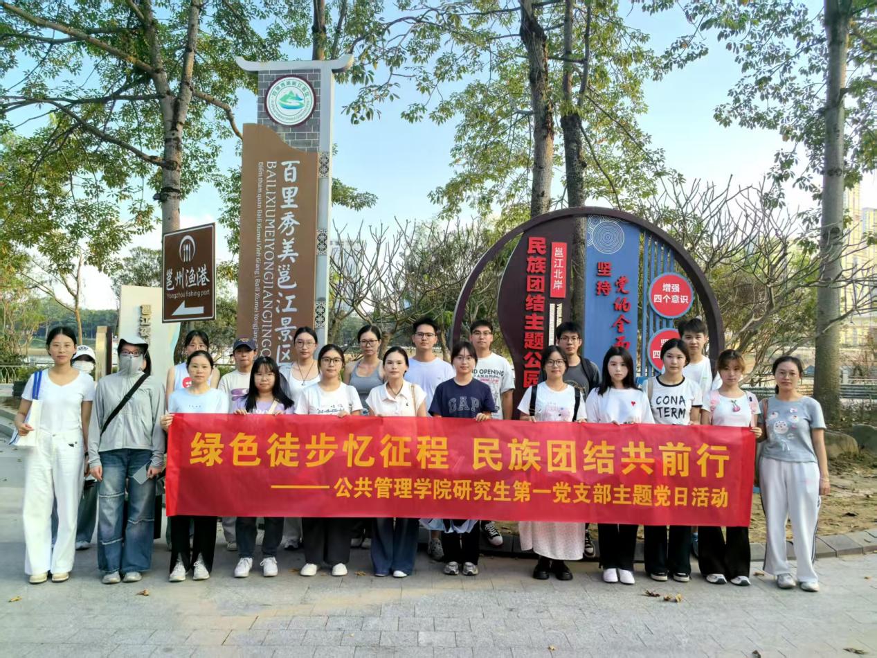 为深入学习贯彻习近平总书记关于民族团结的重要论述和视察广西时的重要讲话精神,将红色教育、民族团结教育与绿色发展理念有机融合,引导党员在徒步锻炼中感悟革命征程的艰辛,在互动交流中增强民族团结意识,2025年10月18日,太阳集团网址8722研究生第一党支部开展了“绿色徒步忆征程 民族团结共前行”主题党日活动,本次活动由支部副书记陈玉婷主持,支部全体党员、发展对象、入党积极分子参加。