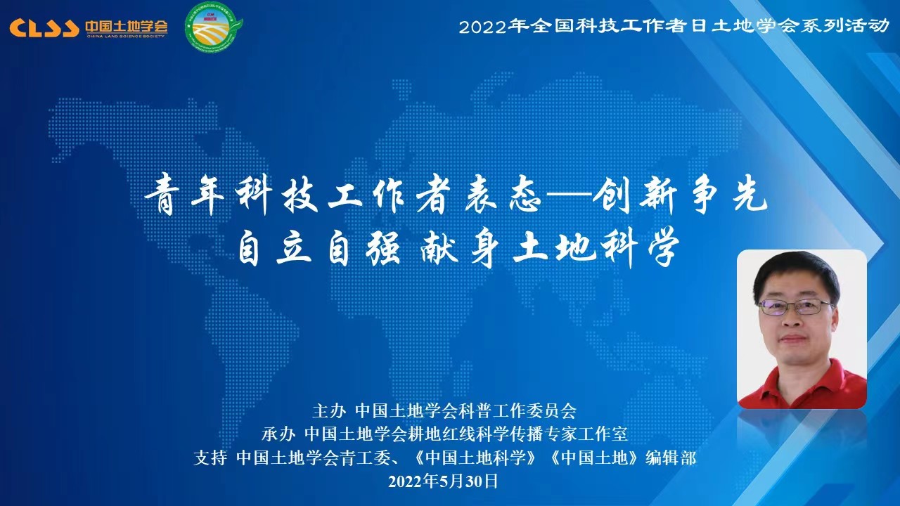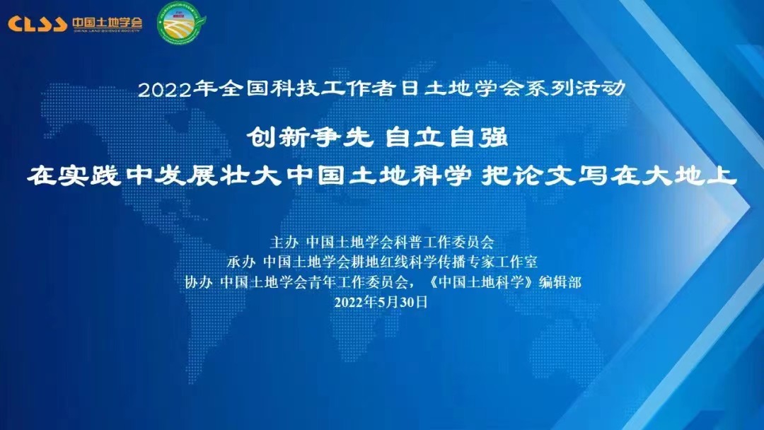 2022年5月30日是第6个全国科技工作者日,中国土地学会开展了以“创新争先、自立自强,在实践中发展壮大中国土地科学,把论文写在大地上”为主题的系列活动。本次活动包括“青年科技工作者说”、“土地科普大咖圆桌会议”、“最美科技工作者座谈”、“回忆老一代土地科学家”、“土地科技进矿区”、“土地科技助力黑土地保护”和“寻访耕保少年”等7个环节。中国土地学会青年工作委员会主任、我院龙花楼教授与汪晗副教授参与此次活动。