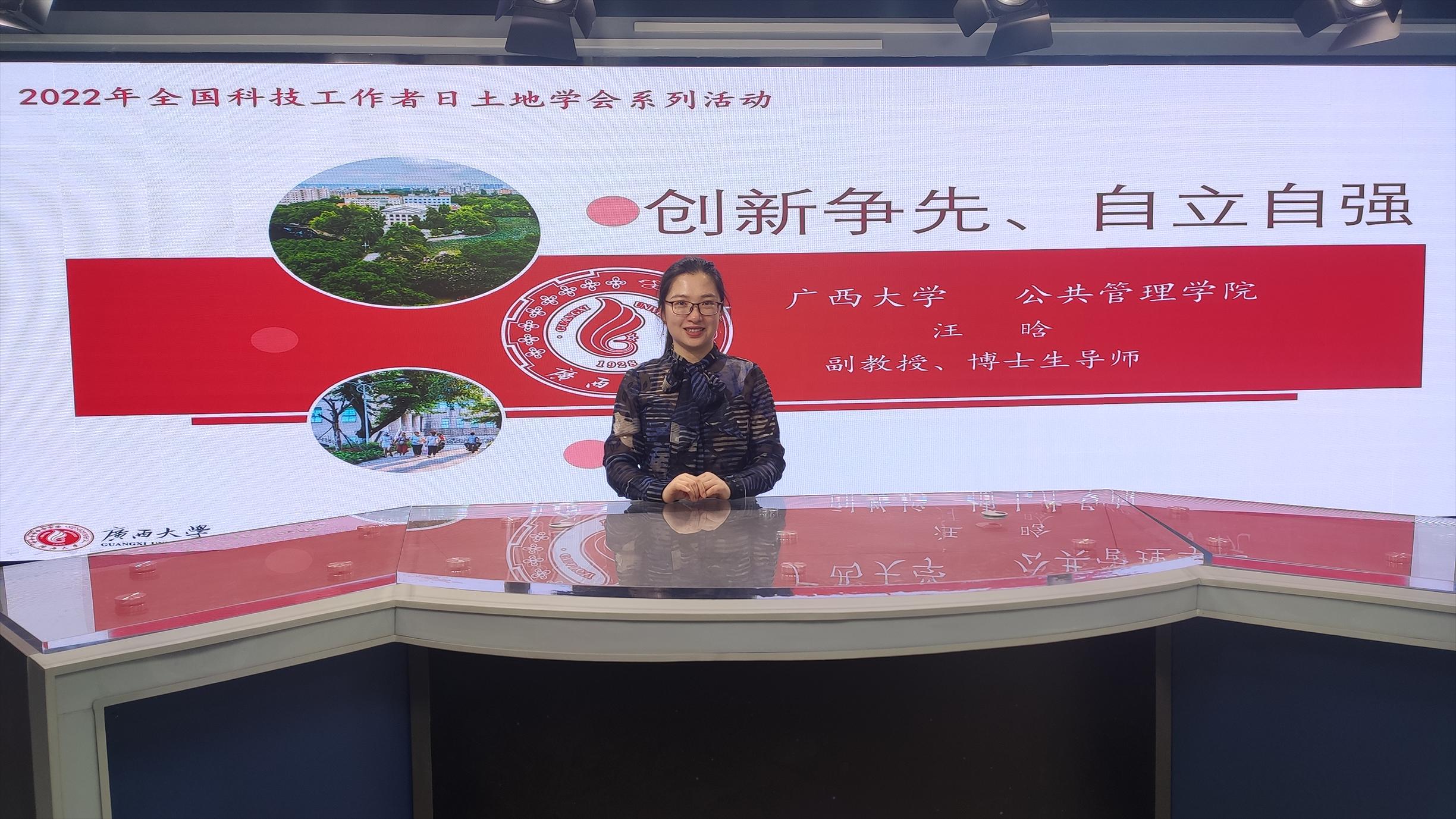 在10位青年土地科技工作者代表中,我院汪晗副教授作为西部地区唯一一名青年科技工作者代表入选参会。发言中,汪晗副教授对自己在本领域“创新争先、自立自强”的成长故事,并结合自身工作岗位和研究领域,表达对我国土地科学技术领域自立自强的。信心和期待,以及立足岗位、创新争先、拼搏奉献土地科学的决心。其中,汪晗副教授“寸土不让,维护主权”的切身经历令人敬佩。对于投稿时一位国外审稿专家指出的,“文中的九段线不符合国际南海争端,为了保持学术中立,建议删除地图中的九段线”,对此,她表示绝不苟同,科学也许没有国界,但科学家有自己的祖国。