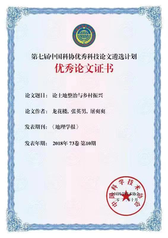 我院龙花楼教授为第一作者于2018年10月在《地理学报》发表的“论土地整治与乡村振兴”一文获此殊荣。该文在基础研究前沿领域作出重要原始创新,对开拓和引领学科发展作出了重要贡献,目前在中国知网被引359次,下载13378次。