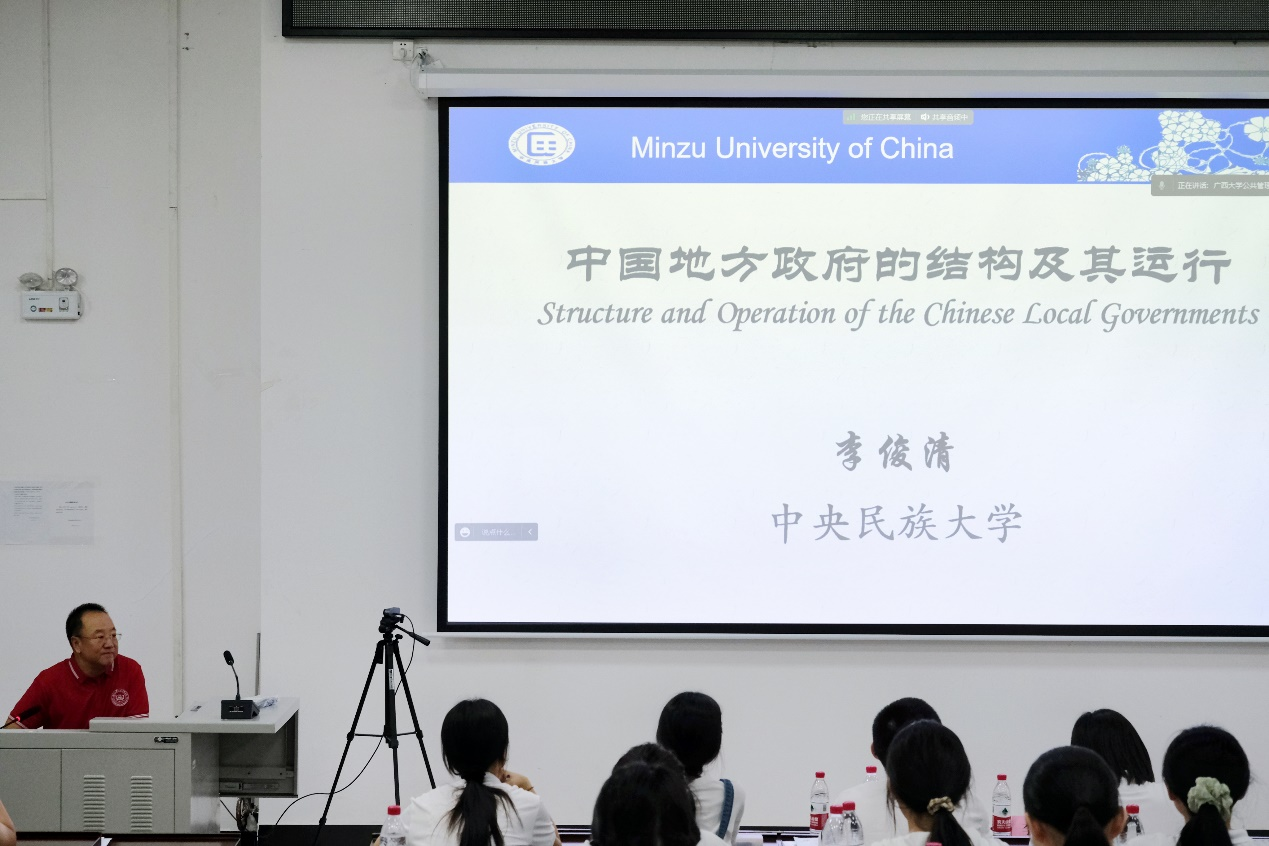 7月6日上午,中央民族大学李俊清教授受邀为我院2023年优秀大学生“博学”夏令营参营学员作题为“中国地方政府的结构及其运作”的学术讲座。本次讲座由我院院长史云贵主持。参营学员们以线上或线下的方式参加此次讲座。