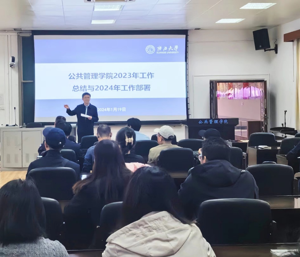 学院院长史云贵代表学院领导班子作2023年学院工作总结和2024年学院工作部署。史云贵院长从学科建设、人才引进、教学科研等方面全面总结了学院2023年取得的成绩。他表示:过去一年,在学校党委行政的关心和领导下,通过全体教职员工的辛勤付出,学院的各项事业取得了长足进步。新的一年,学院将以学科建设为龙头,进一步完善院系管理体系和办学环境,加大人才内培外引的力度,为实现学院内涵式高质量发展而不懈奋斗!