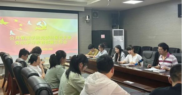 会议上,于丹传达了校党委党纪学习教育部署会会议精神,并启动部署我院党纪学习教育相关工作。她强调党支部要跟进学,党支部“三会一课”、主题党日以学习《条例》为主题,组织全体党员认真学习,灵活组织开展学习,全面覆盖支部党员。