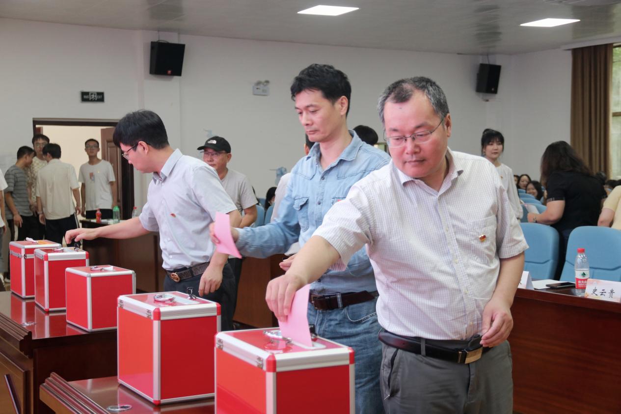 按照换届选举程序,全体党员表决通过了中共太阳集团网址8722委员会、纪律检查委员会换届选举办法和新一届党的委员会和纪律检查委员会委员候选人名单以及监票人、计票人名单,并以无记名投票方式差额选举产生了新一届中共太阳集团网址8722委员会与中共太阳集团网址8722纪律检查委员会。经全体党员投票、现场公布计票结果,于丹、史云贵、陈林、周均旭、聂鑫、覃志敏、曾凡军7位同志当选新一届党委委员,于丹、苏毅清、陈璟浩、雷文艳、鞠平凡5位同志当选新一届纪委委员。大会在庄严的《国际歌》中胜利闭幕。