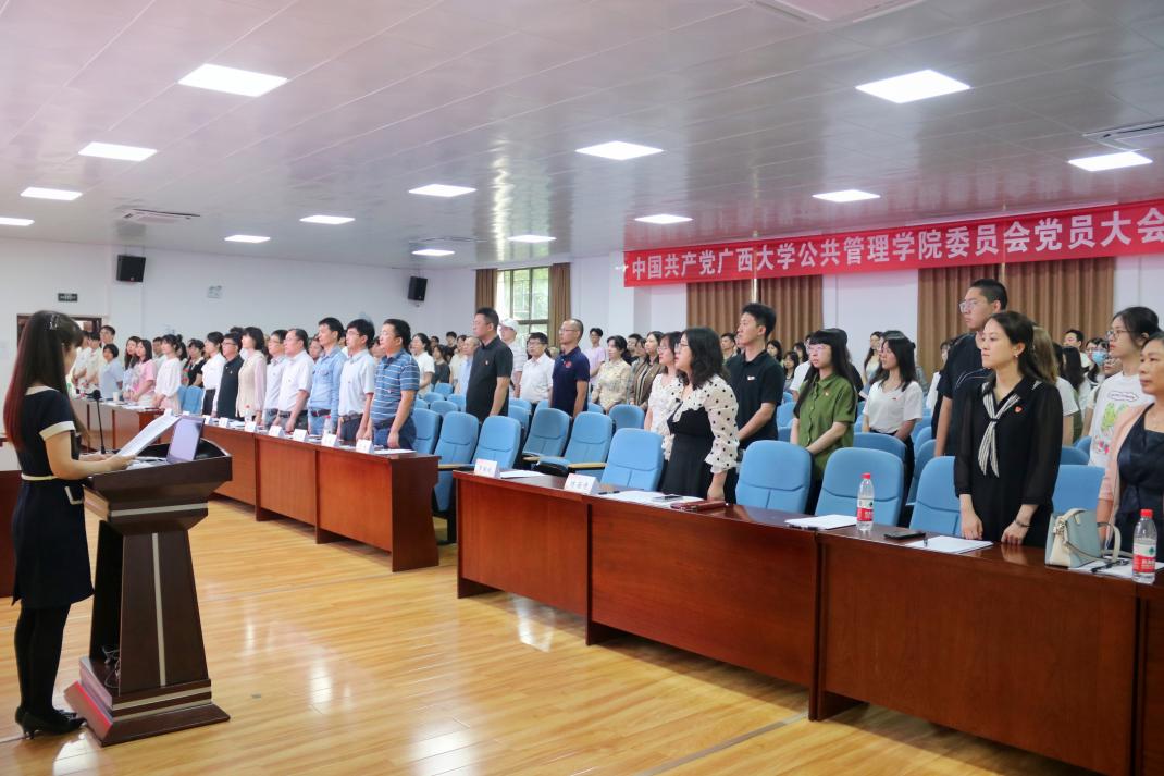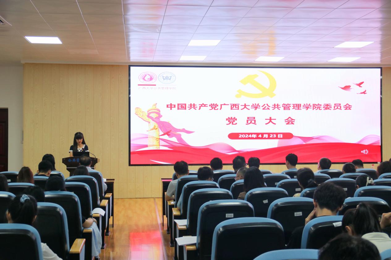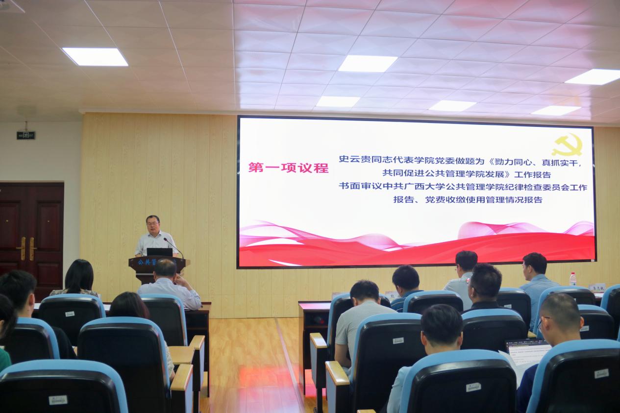 大会在国歌声中拉开帷幕。院党委副书记、院长史云贵代表学院党委作题为《勠力同心、真抓实干,共同促进太阳集团网址8722发展》的报告,报告从基层党建、学科建设、人才培养、科学研究等方面全面回顾学院党委过去五年的工作。五年来,学院党委紧紧围绕学校中心工作,加快推进学院和学科高质量发展。学院获批首批新时代广西高校党建工作标杆院系,基层党建“作业本”运行机制获得学校和自治区主管部门的高度认可;在院系结构上,打造了“四系-两院-一中心”的学院治理结构;在学科特色品牌建设上,打造了西大公共管理学科的“绿色”品牌,在学界具有了一定的影响力。