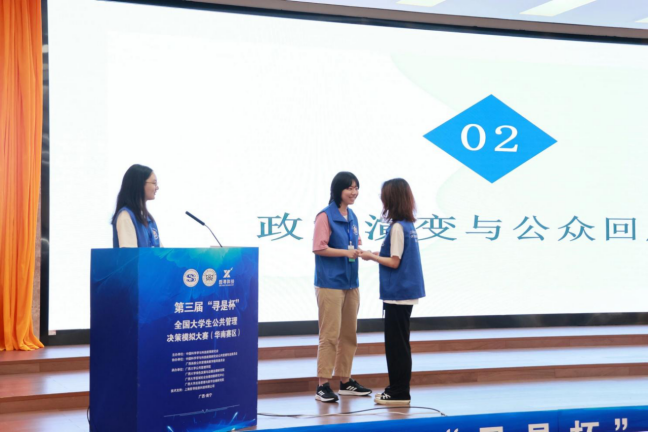 4月28日中午12时,第三届“寻是杯”全国大学生公共管理决策模拟大赛(华南赛区)的闭幕式在君武馆玉林厅进行。