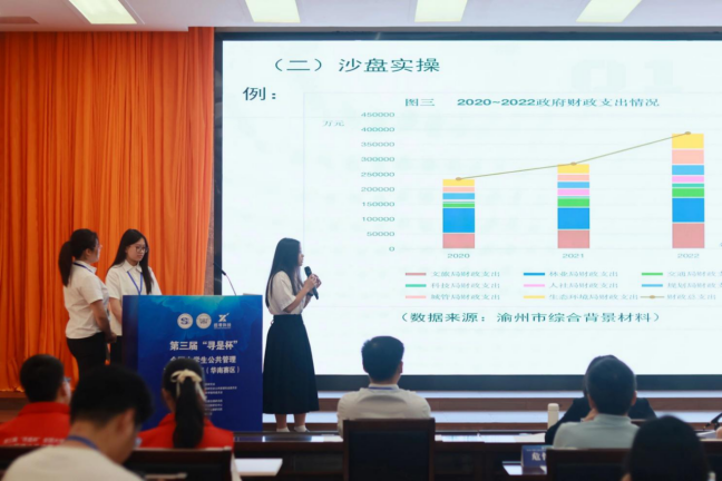 4月28日上午,第三届“寻是杯”全国大学生公共管理决策模拟大赛(华南赛区)的团队答辩环节在君武馆玉林厅进行,晋级的十支小队进行现场答辩。