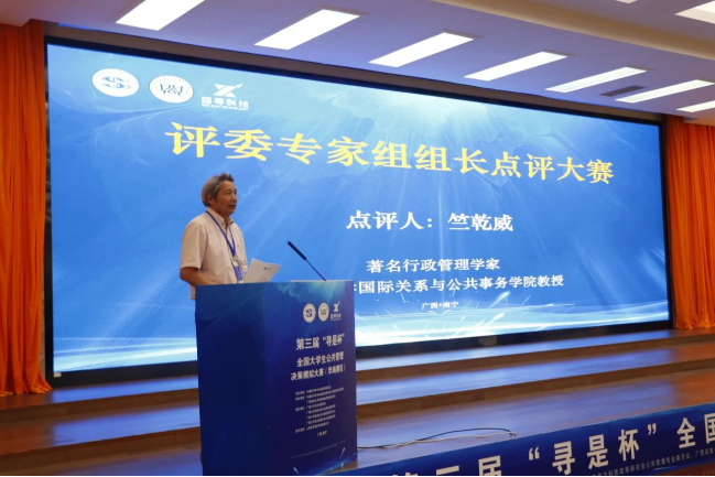 复旦大学国际关系与公共事务学院教授竺乾威点评本次赛事。他指出,各参赛小组从不同角度剖析了具有典型特征的公共案例,形式多样,逻辑严密,考量合理,展现了较高水平的学科理解和运用能力,体现了公共管理学科教育的成效,并表示了对后期赛事的期待。