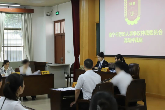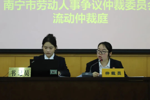 为创新性应用“政产学研”协同育人的教学模式,增强我院学生劳动权益保障意识,从源头处减少劳动用工争议和风险,5月16日上午9:40至11:40在学院201教室举办“劳动人事争议仲裁示范庭”活动。本次活动是吴凡老师主讲课程《劳动法与社会保障法》的创新呈现形式。活动邀请南宁市人事劳动争议仲裁院,依据真实的劳动争议仲裁案例,以真实法庭开庭的形式,将仲裁示范庭带进课堂。