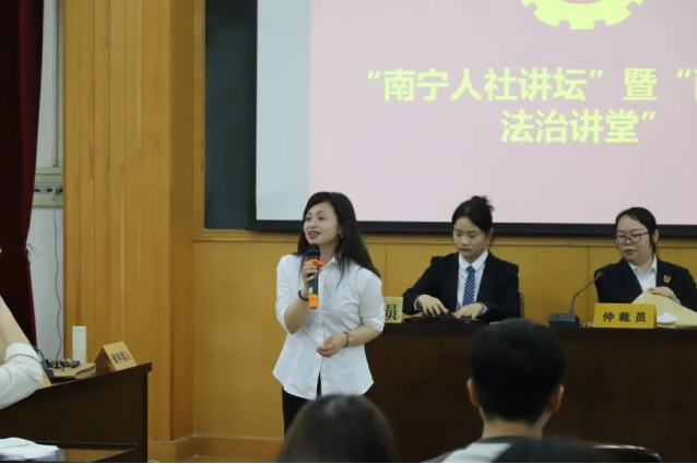 “劳动人事争议仲裁示范庭”暨“南宁人社法治讲坛”进校园活动在我院成功举行