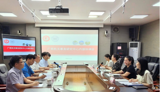 5月30日下午,广西机关事务研究中心工作协调会在我院415会议室召开。自治区机关事务管理局办公室四级调研员谢慧健一行4人及我院行政领导班子成员参加会议。会议由我院院长史云贵教授主持。