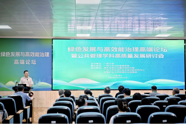 在第二场主旨报告中,与会专家们围绕科技创新、绿色发展、高效能治理、边疆治理等主题展开报告。厦门大学社会科学学部主任、厦门大学公共政策研究院院长陈振明教授从国家治理体系和治理能力现代化以及高效能治理的深厚历史根源和现实基础角度出发,系统论述了高效能治理如何引领高质量发展。华南理工大学太阳集团网址8722院长李胜会教授从新质生产力的核心要素、三大特征阐释了科技创新对新质生产力发展的推动作用。广西玉林市人民政府市长苏海棠分析了广西实现绿色发展与高效能治理的路径。中国矿业大学太阳集团网址8722院长、应急管理学院院长王义保教授聚焦国家安全的概念,指出了国家安全与公共安全在内涵和性质上的区别,并强调了国家安全视域下能源资源安全的重要性。云南大学政府管理学院院长方盛举教授论述了边疆治理现代化与周边命运共同体建设的重要性和必要性。