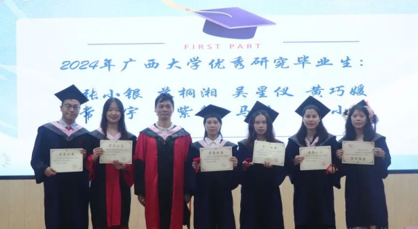 进入学位授予仪式环节,覃志敏宣读学位授予决定后,本科生、学术型硕士及博士生毕业生按顺序依次上台接受学位授予。院学位委员会成员为获得学位的毕业生行拨穗礼并授予学位证书、合影留念,毕业班班主任、辅导员老师为每一位毕业生送上忠诚祝福。