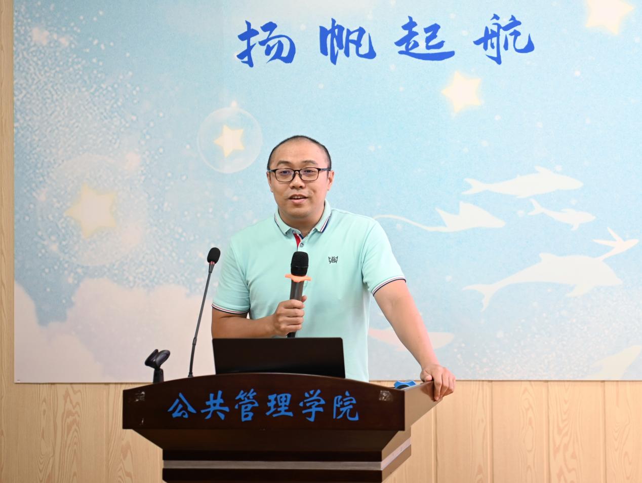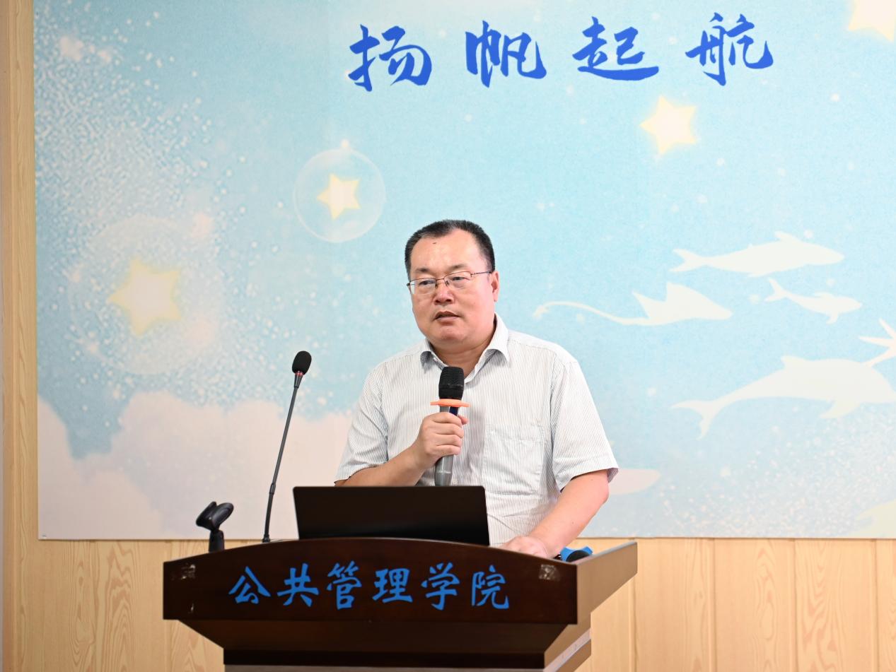 史云贵首先对新生们表示衷心祝贺和热烈欢迎,并介绍了学院的办学历史、师资力量和学科建设情况。接着他指出,在公共管理硕士这一概念中,公者是为最先,要关注公共利益、追求公共精神、走向公平正义,方能有所成就;管理居之其中,要树立服务人民的管理导向,遵循管理走向治理的规律和管理、治理即是服务的理念,不断提高为人民服务的能力和水平;硕士紧随其后,专业型硕士意味着在系统学习理论知识的同时要学以致用,以知识为工具来解决现实中的各种复杂问题。最后,他祝愿新生们能够在未来脱颖而出,在以小我走向大我的过程中更好的成就自己、造福社会。