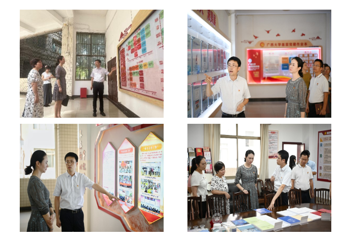 活动中,聂鑫带领财务处党支部同志参观学院党建文化墙及党员活动室,介绍学院“党旗引领“五彩共融”党建品牌工作体系,展示学院党建育人成果。