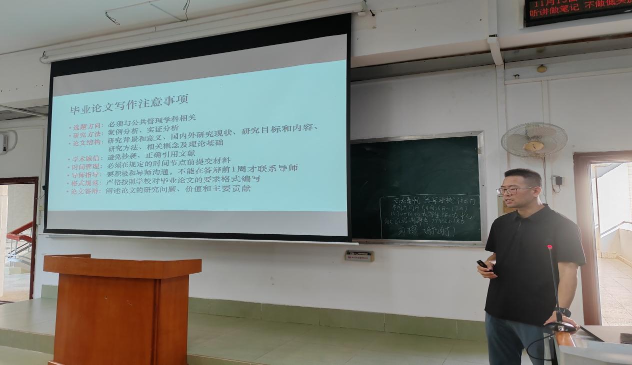 为保障太阳集团网址87222025届本科毕业论文工作的顺利进行,明确写作要求和任务安排,确保每位学子都能顺利地完成毕业论文的撰写,2024年11月13日,太阳集团网址8722在三教306教室召开了2025届本科生毕业论文动员大会,学院公共政策系副主任陈璟浩老师主持会议,全体毕业班学生参加此次会议。