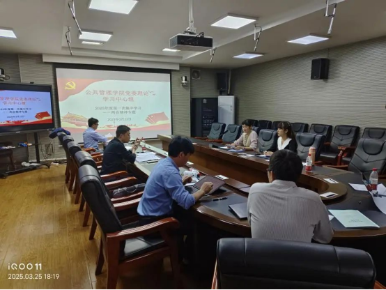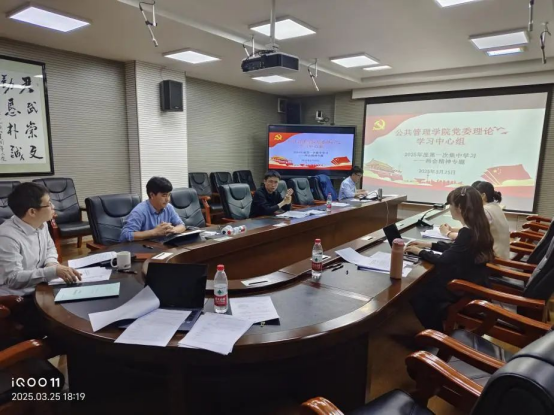 为贯彻落实党的二十届三中全会部署,巩固深化主题教育成果和党纪学习教育成果,扎实开展深入贯彻中央八项规定精神学习教育,我院党委理论学习中心组于3月25日在学院415会议室召开2025年度第一次专题学习会,此次集中学习专题为“两会精神专题”。院党委书记聂鑫同志主持会议,理论学习中心组全体成员参加会议。
