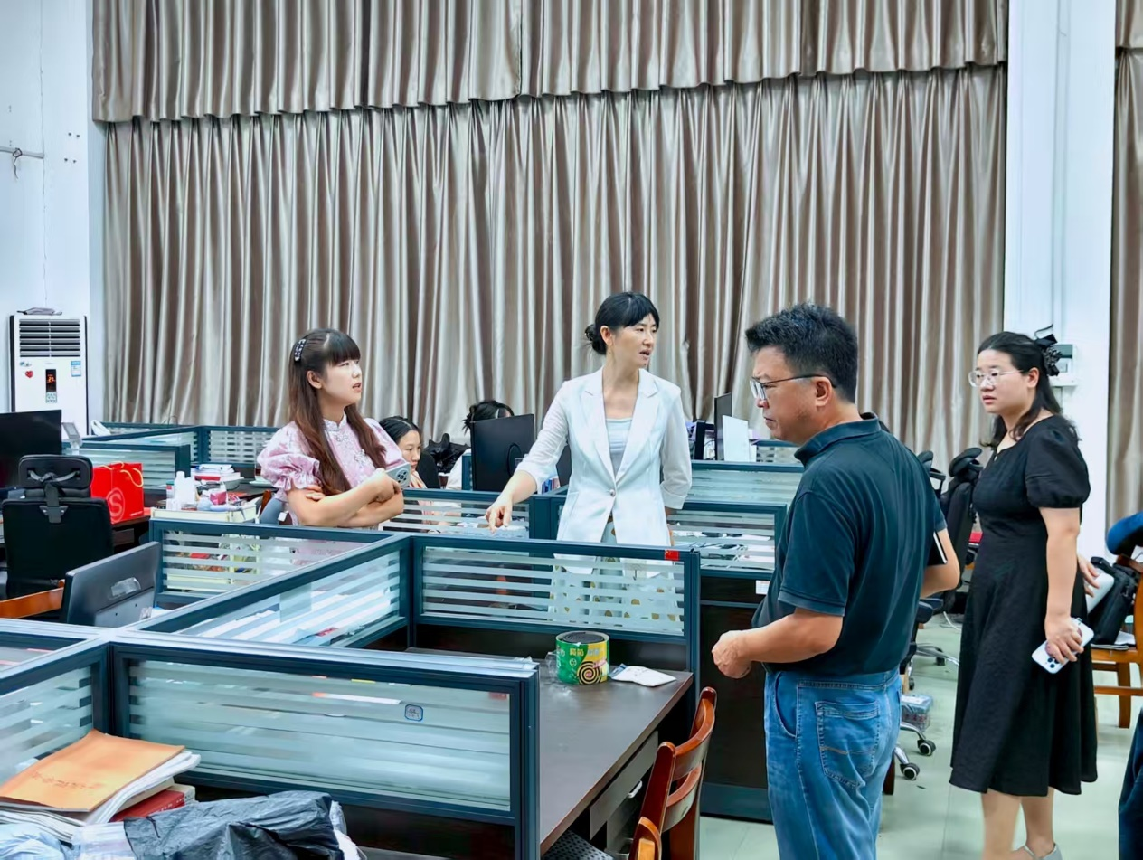 检查组先后对阅览室、教师工作间、研究生工作室、实验室等重点场所开展卫生与安全专项检查。检查过程中,检查人员结合工作室实际使用场景,详细询问安全管理责任落实情况,并逐一对卫生死角清理、用电线路规范、物品存放等问题进行现场指导。针对部分办公室存在的功能分区不合理和杂物过多等影响空间使用效率的问题,检查组结合师生实际需求,提出了优化空间分区、建立定期清扫责任机制等针对性改进建议。