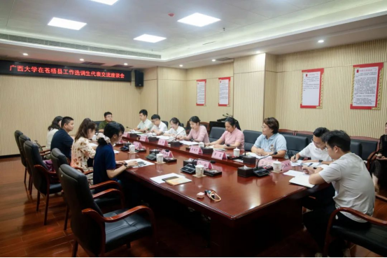 为贯彻落实学校党委关于选调生工作的重要决策部署,深入了解我校选调生在县域基层的工作现状与思想工作动态,推动选调生“君武青苗”行动落到实处,7月23日,学院党委副书记于丹,校学生工作部(处)王天亮,学院团委书记刘佩瑶,团委副书记侯俊丽一行赴梧州苍梧县走访调研选调生工作,召开选调生代表座谈会。苍梧县县委常委,组织部长吴静,县委组织部副部长潘烨娴以及太阳网集团tcy8722选调生代表出席座谈会。