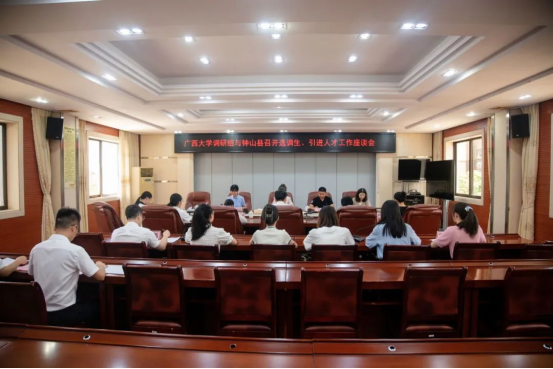 为贯彻落实学校党委关于选调生工作的重要决策部署,深入了解我校选调生在县域基层的工作现状与思想工作动态,推动选调生“君武青苗”行动落到实处,7月24日,学院党委副书记于丹,校学生工作部(处)王天亮,学院团委书记刘佩瑶,团委副书记侯俊丽一行赴贺州钟山县走访调研选调生工作,召开选调生代表座谈会。钟山县县委常委,组织部长黎科及太阳网集团tcy8722选调生代表出席座谈会。