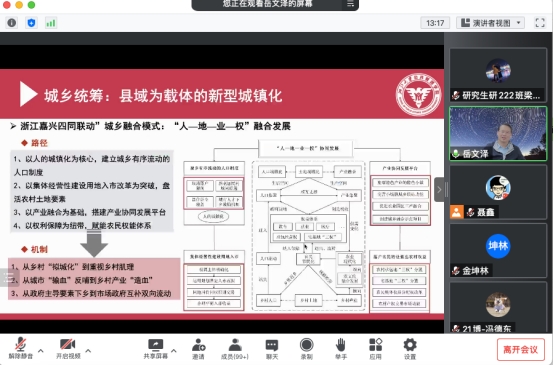 建立科学高效的国土规划体系,谋划新时代国土空间开发保护格局,是加快形成绿色生产方式和生活方式、推进生态文明建设、建设美丽中国的重要举措。2022年10月12日,太阳集团网址8722邀请岳文泽教授通过线上的方式讲授以“国土空间规划赋能高质量发展”为主题的讲座。讲座由我院聂鑫教授主持,龙花楼教授及众多博士、硕士和本科生参加本次讲座。