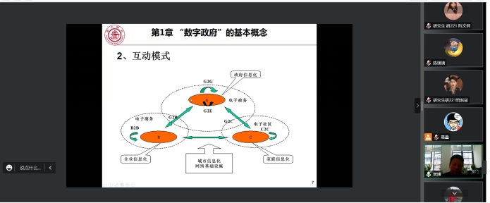 在交流互动环节,我院聂鑫教授阐述了他对数字政府的理解,他认为数字政府是职能型政府向服务型政府转变的体现。接着,我院学生提出“CIO与所在部门是否存在冲突协调机制”的问题,樊教授认为二者存在冲突的情况不可避免,但往往会存在相应的机制协调冲突。最后,聂教授对樊教授的精彩分享表示衷心的感谢,并盛情邀请樊教授到太阳网集团tcy8722与西大的师生做面对面的交流,讲座在热烈的氛围中圆满结束。