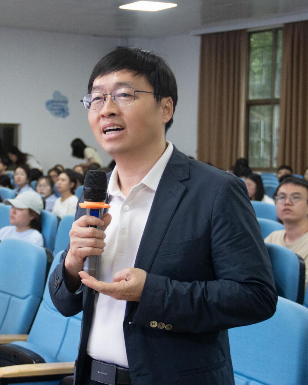 在交流互动环节,龙花楼教授谈到应注重学科交叉,利用AI技术推动研究范式转型,以满足社会需求,并就AI技术在数字经济方面的运用与陈教授展开了讨论。我院21级硕士生杨紫馨就AI技术在公共管理中的应用提出了自己的疑问,陈教授进行了详细解答,并再次强调,“AI+公共治理”的总方向应是人机协同与人机融合。至此,讲座在热烈的氛围中圆满结束。