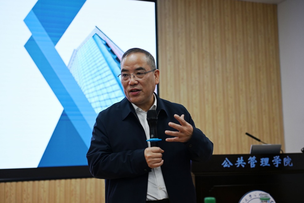 为了增强学术意识,深化同学们对中国公共管理自主知识体系的深刻理解。12月7日下午,浙江工商大学党委书记,浙江大学社会治理研究院院长、国家制度研究院首席专家郁建兴教授受邀于我院107报告厅作题为《建构AI时代中国公共管理自主知识体系》的学术讲座。本次讲座由我院党委书记聂鑫教授主持,院长史云贵教授、副院长曾凡军教授、刘汶副教授、李小红副教授、陈璟浩副教授、姜棪峰老师及60余名博士、硕士研究生到场聆听,现场学术氛围浓厚。