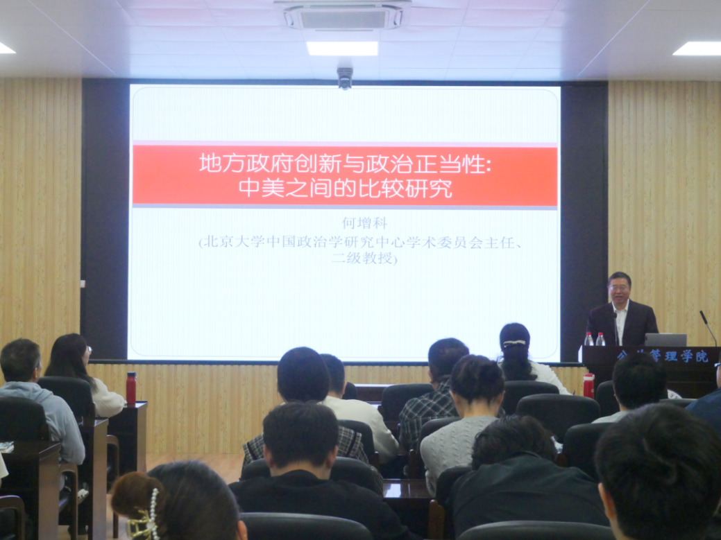 11月7日上午,北京大学中国政治学研究中心学术委员会何增科教授受邀于我院107报告厅开展题为《地方政府创新与政治正当性:中美之间的比较研究》的学术讲座。本次讲座由院党委书记唐旭彬主持,吸引我院众多师生参加,现场学术研讨氛围浓厚。