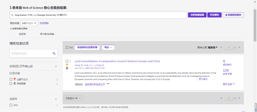 我院龙花楼教授论文入选全球前1% ESI高被引论文
