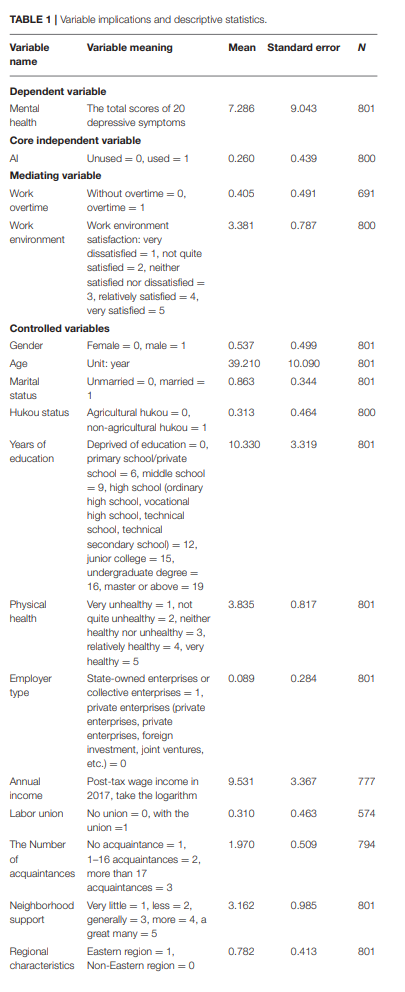 Wei W, Li L. The Impact of Artificial Intelligence on the Mental Health of Manufacturing Workers: The Mediating Role of Overtime Work and the Work Environment. Front Public Health. 2022 Apr 11;10:862407. doi: 10.3389/fpubh.2022.862407. PMID: 35480579; PMCID: PMC9035848.