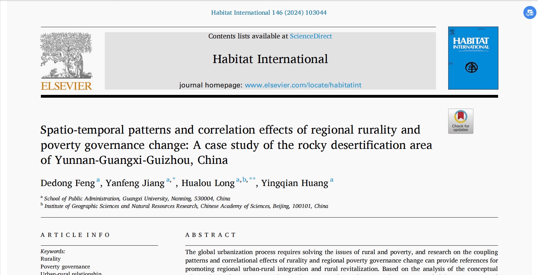 我院博士研究生冯德东在Habitat International发文探讨滇桂黔石漠化片区乡村性与贫困治理变化