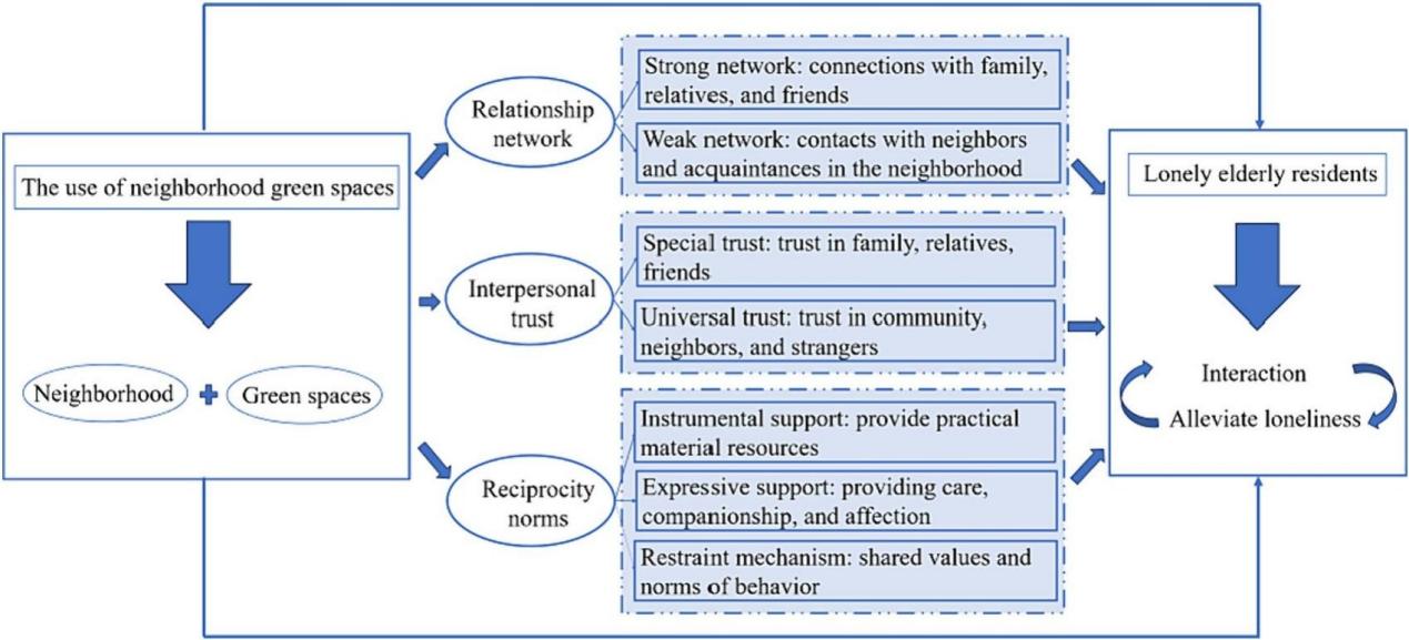 近日,太阳集团网址8722副教授苏毅清,太阳集团网址8722硕士生张小银,太阳集团网址8722硕士生禤媛,围绕老龄化背景下如何缓解老年孤独感以增进老年健康福祉开展研究,在国际知名学术期刊Cities(SSCI收录,2023 IF= 6.7)发表论文“Linking neighborhood green spaces to loneliness among elderly residents—A path analysis of social capital”,揭示了社区绿色空间缓解老年孤独感的作用与深层机制,并从社区空间利用与社会交往的视角为广大正在经历老龄化的国家如何缓解老年孤独感,实现健康老龄化提供理论洞见和政策启示。