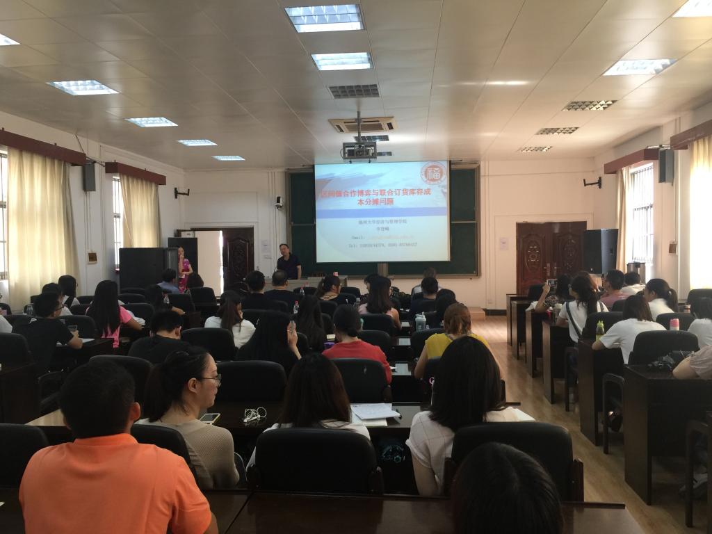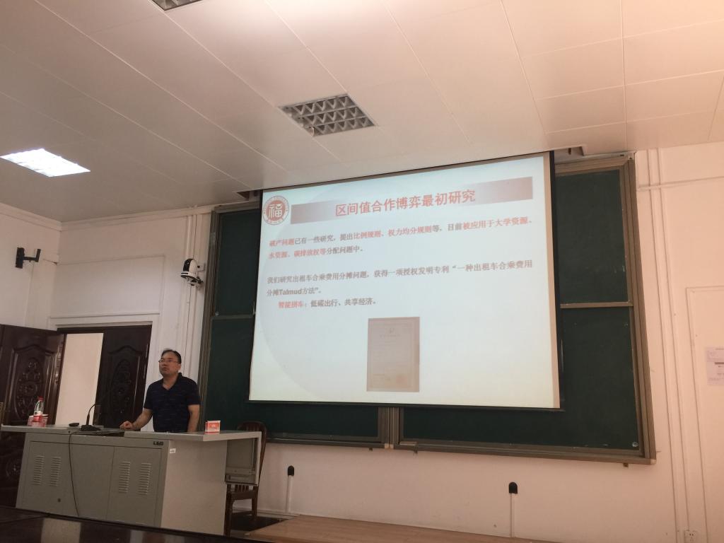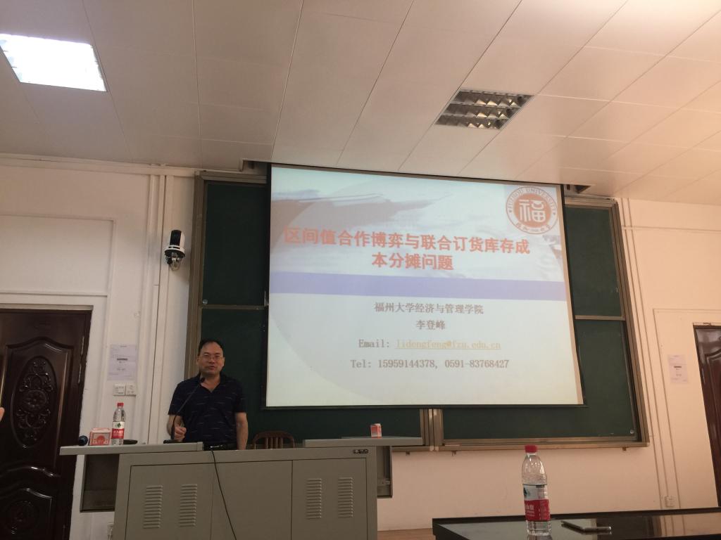 5月27上午10时,福州大学经济与管理学院教授李登峰于我院107学术报告厅开展主题为“区间值合作博弈与联合订货库存成本分摊问题”的学术讲座。讲座由我院汪晗副教授主持,数信学院刘芳教授、我院聂鑫教授和我院众多研究生参加了本次讲座。