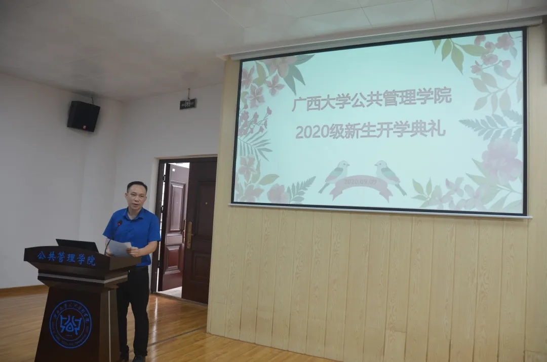 9月8日上午十点半,太阳集团网址87222020级新生开学典礼在学院203教室隆重举行。院党委书记聂鑫教授、院长郑方辉教授、院党委副书记甘武琳、副院长周均旭教授、副院长魏万青教授、副院长黄宏伟老师、公共管理系主任黎昌珍教授等党政领导班子及教师代表出席仪式。