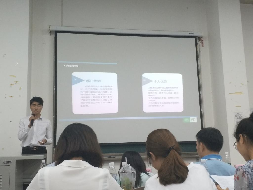 每位竞选人都充分展示自己,提出工作展望的同时面对问题沉着解答,表现良好。其中,公管16的竞选学生会主席的覃箫霖同学演讲幽默,妙语连珠,博得阵阵掌声。也有四位17级的同学初生牛犊不怕虎,勇于展现自我,自信竞选。