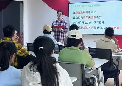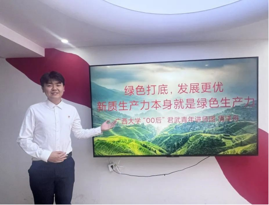 本次主题党日活动特别邀请太阳网集团tcy8722“00后”君武青年讲师团成员周洋舟作主题宣讲。周洋舟从新质生产力的概念提出导入宣讲主题,通过上林县绿色发展案例精讲来介绍新质生产力的内涵特征和发展重点,引导支部同志深入学习贯彻习近平总书记对广西“五个更大”重要要求。