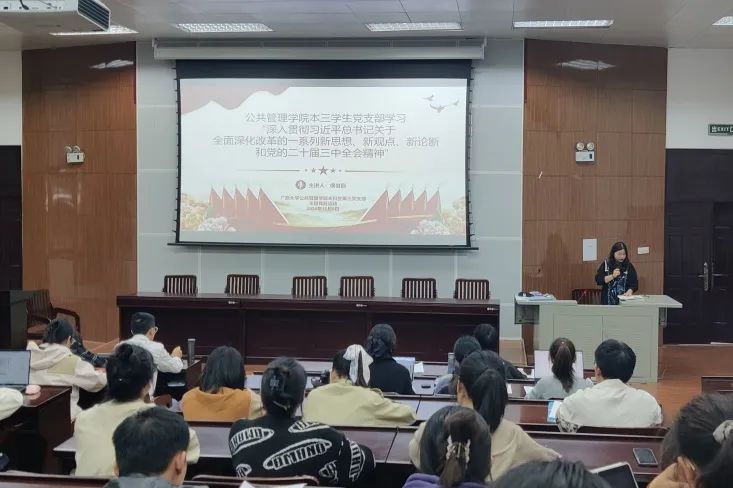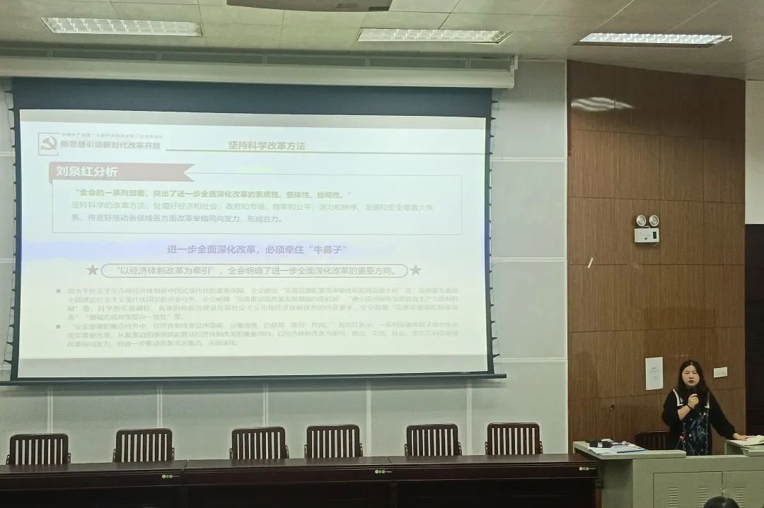 为深化对习近平总书记关于全面深化改革一系列新思想、新观点、新论断的理解,进一步提升党员的政治素养和理论水平,12月6日下午,我院本科第三学生党支部组织开展了习近平总书记关于全面深化改革的一系列新思想、新观点、新论断和党的二十届三中全会精神专题学习活动。会议由本科第三党支部副书记孙琪然主持,支部全体党员参会。