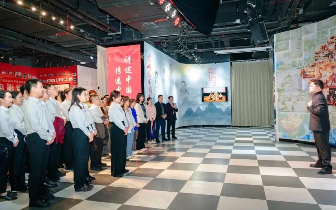 沉浸式体验结束后,全体党员面向党旗整齐列队,举起右拳、庄严宣誓。重温一次入党誓词,支部党员深情回望入党初心使命,在庄严肃穆的氛围中提升党性修养。