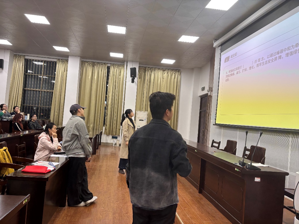 领学结束后,主持人邱家东同志带领支部开展“解码全会精神,青春勇毅前行”知识竞赛。竞赛题目紧扣党的二十届四中全会精神要点,涵盖“十五五”规划目标、高质量发展部署等关键内容,设置单项选择题、多项选择题和填空题三个环节,全方位考验党员的理论功底与应变能力。