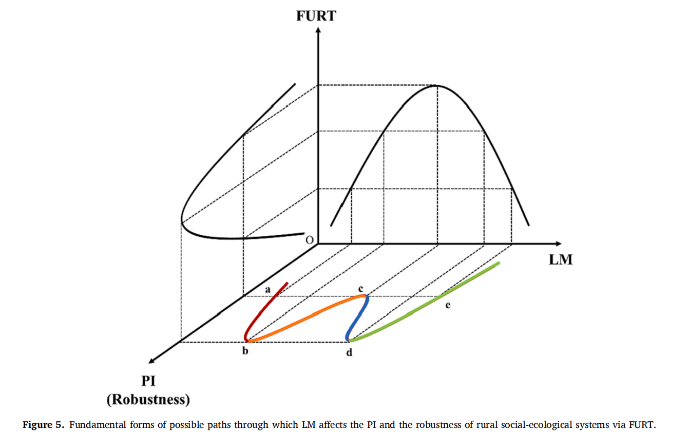 Figure2 Fundamental forms of possible paths through which LM affects the PI and the robustness of rural social-ecological systems via FURT